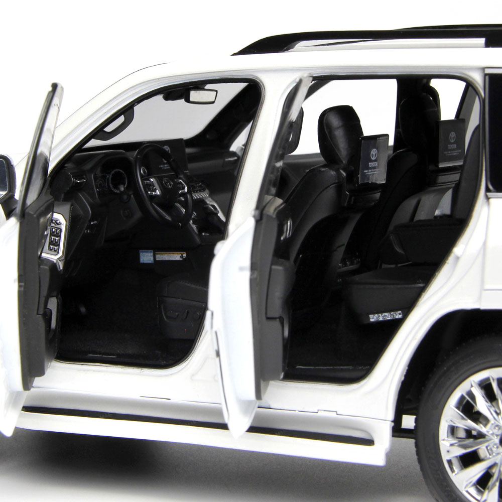 This replica showcases the Land Cruiser’s bold design with sculpted body lines, signature grille, and scale-accurate headlights and taillights. The high-quality paint finish enhances the model’s premium look, while fine details such as door handles, mirrors, and badging are faithfully reproduced. Opening doors reveal a detailed interior, complete with adjustable seating, dashboard instrumentation, and center console elements, reflecting the luxury and functionality of the real ZX trim.