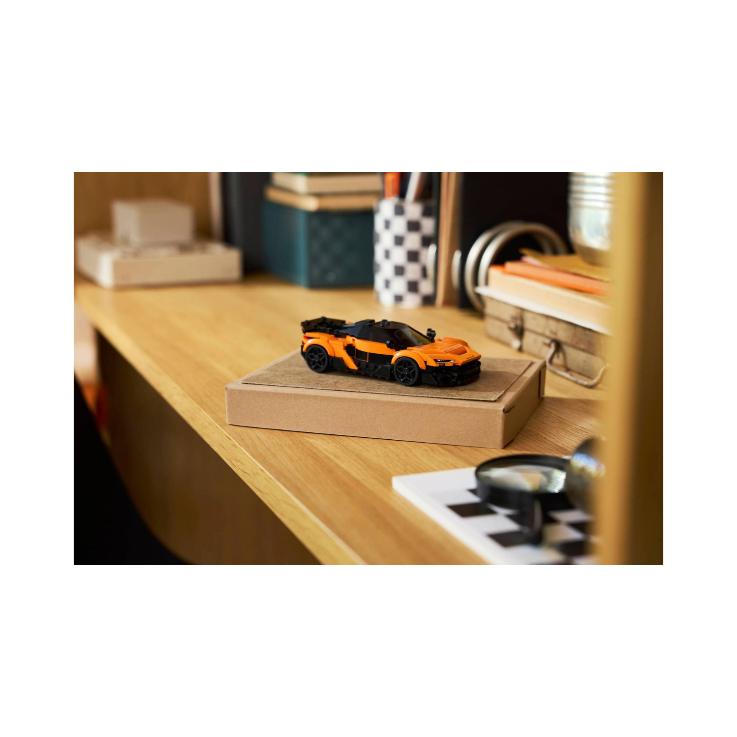 DIMENSIONS – A 287-piece playset featuring a McLaren W1 Car model measuring over 1.5 in. (4 cm) high, 6 in. (15 cm) long and 2.5 in. (7 cm) wide